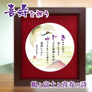 喜寿のお祝い プレゼント 鶴 富士山 赤富士 贈り物 額入 ポエム 詩 ギフト 77歳 誕生日 記念 縁起