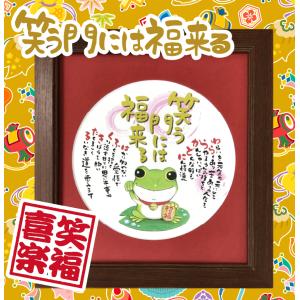 笑う門には福来る かえる プレゼント 贈り物 お祝い 記念 ポエム 詩 色紙サイズ額入 ギフト 福 招き かわいい イラスト