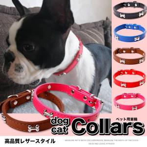 犬 猫 首輪 レザー 合皮 ペット 服 メッキ 骨 キャット ドッグ ペットグッズ 小型犬 中型犬 大型犬