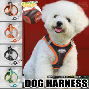 犬 ハーネス リード付 ペット 服 ウェアハーネス 胴輪 キャット ドッグ メッシュ
