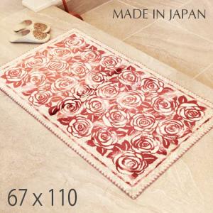 大阪泉州産 玄関マット 洗える 67x110cm 抜群の肌触り 滑り止め付 モケット織 マット 抗菌加工 防臭加工 バラ 薔薇 手洗い 上質 高級感 花柄 アクリル ROZ67-110