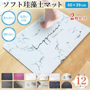 珪藻土バスマット バスマット 2枚セット ソフト やわらかい 洗える 割れない 大判 速乾 珪藻土 柔らか 大理石 60cm ノンアスベスト