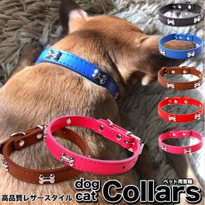 犬 猫 首輪 レザー 合皮 ペット 服 メッキ 骨 キャット ドッグ ペットグッズ 小型犬 中型犬 大型犬