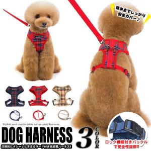 犬 ハーネス リード付 ペット 服 タータンチェック ウェアハーネス 胴輪 キャット ドッグ メッシュ チェック