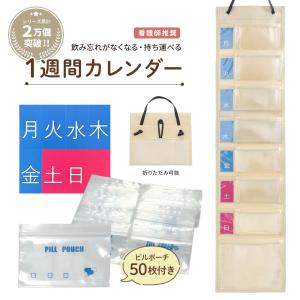看護師推奨 お薬カレンダー 介護経験者が開発 1週間 ピルポーチ付き 薬カレンダー コンパクト 大きめポケット 旅行 飲み忘れ防止 高齢者 子供 災害時備え