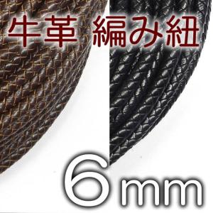 牛革 編み紐 6mm 六つ編み 丸紐 1m単位 革ひも 切り売り 6.0mm 革紐 皮ひも 皮紐 レザーコード 編紐