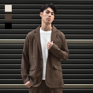 ジャケット メンズ カジュアルジャケット テーラードジャケット ストレッチ 楊柳 無地 裏地なし セットアップ(別売) 秋 春 アイボリー ブラウン ブラック 黒