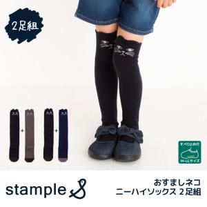 72274 stample スタンプル おすましネコ ニーハイソックス 2足組 靴下 クロ かわいい リボン キッズ 靴下