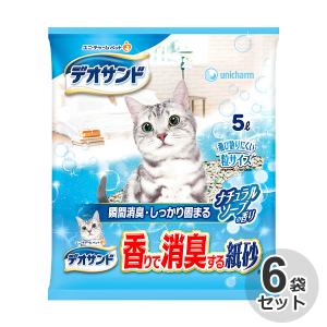 ケース 国産 デオサンド 香り消臭紙砂 ナチュラルソープの香り 5L × 6袋 猫砂 ネコ砂 香りで消臭する紙砂 紙タイプ 紙砂 消臭 ユニ・チャーム