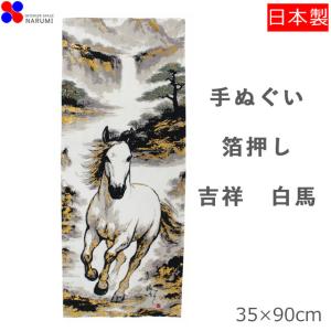 手ぬぐい 箔押し 吉祥白馬 35×90cm 2026年 干支 馬 縁起物 新年 03-794