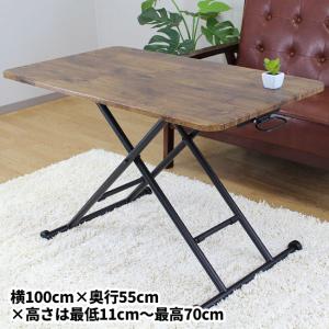 昇降テーブル リフティングテーブル 幅100cm 奥行55cmブラウン色 ガス 圧 キャスター付き 高さ調整 無段階調節 完成品