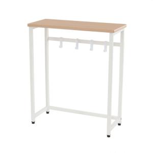 ナチュラル色 コンソールテーブル 玄関便利テーブル サイドテーブル フック付き 小さなテーブル 幅60cm×奥行26cm×高さ70cm 27-430