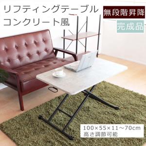 昇降テーブル リフティングテーブル 幅100cm コンクリート風色 テーブル 完成品 昇降式 ガス圧 100×55×70cm 27-440