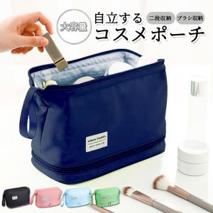 [20%OFF→1352円!クーポンで!]化粧ポーチ メイクポーチ 二段コスメポーチ 大容量 自立 化粧品 メイク ブラシ メイク用品 コスメ 収納 防水[郵3]^bm1426^