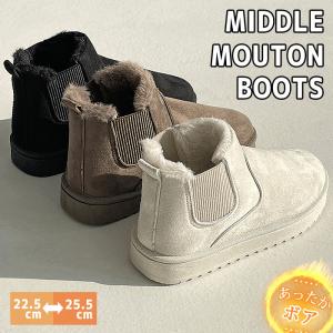サイドゴア ムートンブーツ ショートブーツ ファー あったかい カジュアル フラット レディースシューズ ^bo-748^