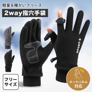 手袋 スマホ対応 指なし 指穴つき 指先が出る メンズ フリース素材 タブレット操作可能 暖かい 防風 釣り グローブ アウトドア 通勤 通学