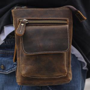 TIDING 本革 ウエストバッグ メンズ 携帯ポーチ ベルトポーチ ビンテージ 2WAY ミニショルダーバッグ カラビナ付 育てる 厚手牛革 アウトドア鞄 ギフト ブラウン