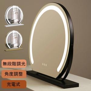 卓上ミラー 女優ミラー ledライト付き 大きい 丸型 おしゃれ 三色調光 鏡 化粧鏡 メイク アップ ミラー 充電式 化粧ミラー 北欧 インテリア 卓上鏡 角度調整
