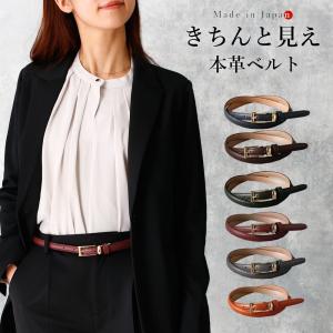 日本製 本革ベルト レディース 細ベルト 牛革 レザー 調整可 フォーマル オフィスカジュアル 冠婚葬祭 ゴールドバックル ブルー 黒 紺 ギフト [M便 1/2]