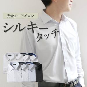 ワイシャツ 長袖 形態安定 ニットシャツ ストレッチ ノーアイロン メンズ 紳士用 ビジネス スーツ 就活 白 ホワイト 水色 ブルー スリム ボタンダウン