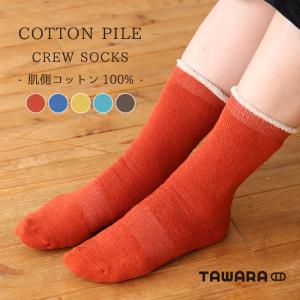 TAWARA(たわら)肌側綿100% コットンパイル やわらかクルーソックス 1P 靴下 ジュニア レディース パイル ふかふか あったかい t41041 秋 冬