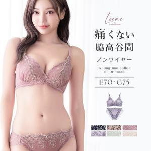 ブラジャー 上下セット 《Leene》マニョリアレースブラ&ショーツ 補正 脇高 痛くない 自胸で叶えるくっきり谷間 脇肉 盛れる ツーハッチ