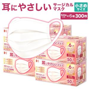 耳にやさしいサージカルマスク 小さめ 白 300枚 (50枚入×6箱) JIS規格適合 | 長谷川綿行 耳が痛くなりにくい ウイルス 飛沫 女性 子ども 3層構造