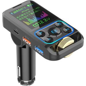 FMトランスミッター Bluetooth5.0 PD QC3.0高速充電 スマホ充電 合計53W 高音と重低音の調整 AUX IN/OUT対応 ハンズフリー通話 電圧表示