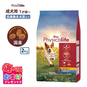 おまけ付き フィジカライフ Physicalife 成犬用 白身魚&大豆入り 2kg 2キロ ドッグフード 犬 イヌ 成犬 ペット 健康 無着色 無香料 無添加 総合栄養食