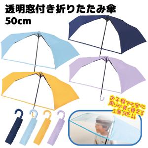 透明窓付き折りたたみ傘 50cm | 窓付き 無地 イエロー ライトブルー パープル ネイビー おりたたみ 傘 折りたたみ傘 キッズ こども 手開き カサ 子供用 1000