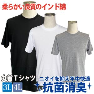 インナー シャツ メンズ 男性用 下着 肌着 半袖 丸首 抗菌消臭 綿100% 3L 4L 大きいサイズ Tシャツ ヤマダ