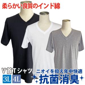 インナー シャツ メンズ 男性用 肌着 下着 半袖 V首 抗菌消臭 綿100% 3L 4L 大きいサイズ Tシャツ ヤマダ