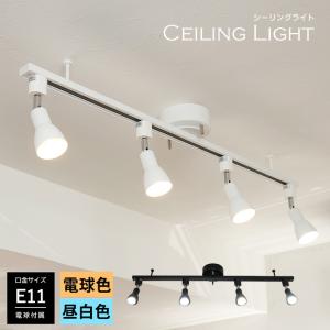 シーリングライト 4灯 ダクトレール スポットライト E11 40W相当 照明器具 レールライト おしゃれ 天井照明 ライティング リビング 食卓用 電球色 昼白色 白 黒