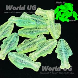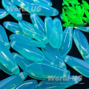 ウランガラス フィッシュビーズ アクアグリーン/イエロー 24mm×11mm 3粒