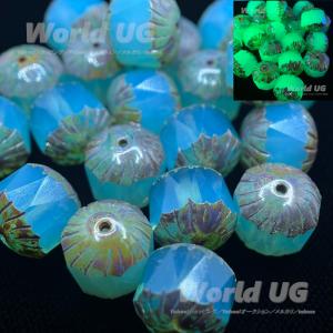 ウランガラス 多面体ビーズ クラック 黄色/緑色2トーン10mm 10粒