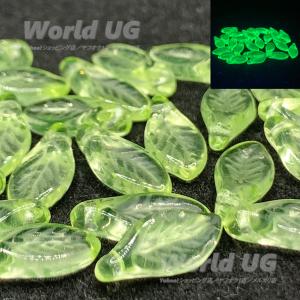 【再入荷】 ウランガラス メイプルリーフビーズ グリーン/イエロー2トーン 13mm×11mm 5粒