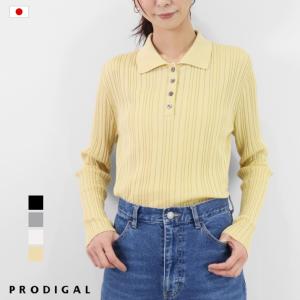 リブ ニット ポロシャツ 日本製 長袖 レディース 薄手 シルク コットン M L 秋 春 セーター 五泉ニット 綿レーヨンシルク ランダムリブポロニット