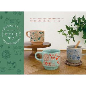 マグカップ 猫 北欧風 ティーカップ おしゃれ おさんぽマグ 300mlml 陶製品 電子レンジ可 直径8.8cm 高さ12.2cm 可愛いパッケージでプレゼントにも