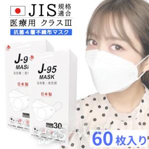 J-95 マスク 2箱セット 1箱30枚 日本製 不織布 J95 医療用JIS規格取得済みマスク 3D立体構造 4層構造 話しやすい 息がしやすい 個別包装