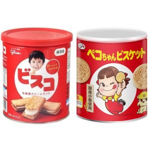 \ 2個セット /保存食/グリコ Glicoビスコ保存缶 30枚 + 不二家 ペコちゃんどこでもビスケット 保存缶 100g 計2個セット / 非常食 セット品 防災グッズ