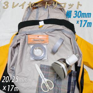 シームテープ テント ザック タープ シート レインウェア 補修 メンテナンス 防水 3レイヤー適合 トリコット 表面布状 アイロン式 薄型0.25mm 30mm×17m グレー