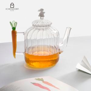 イッケンドルフ ミラノ 白ウサギとニンジン ティーポット teapot optic carrot and white rabbit ガラス おしゃれ ウォーマー イタリア ICHENDORF MILANO