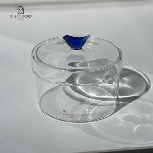 イッケンドルフ ミラノ ガラスボックス 青い鳥 蓋付 BIRDS Low box blue bird イタリア コットンボックス キャンディーbox おしゃれ ICHENDORF MILANO