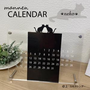名入れ可能 卓上アクリル万年カレンダー ネコ 透明 おしゃれ 新生活 インテリア プレゼント ギフト 結婚祝い 出産祝い 記念品 引越し祝い 開店祝い 創立記念