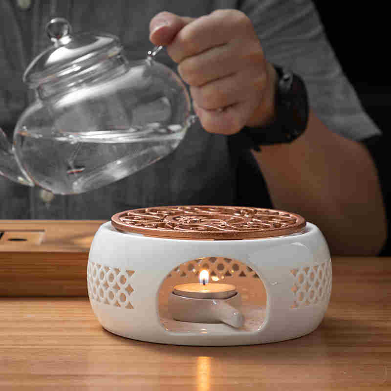 ティーポットウォーマー レトロ温茶ストーブ 家庭用キャンドル暖房ストーブ ティーポット断熱ベースセラミックティーウォーマー