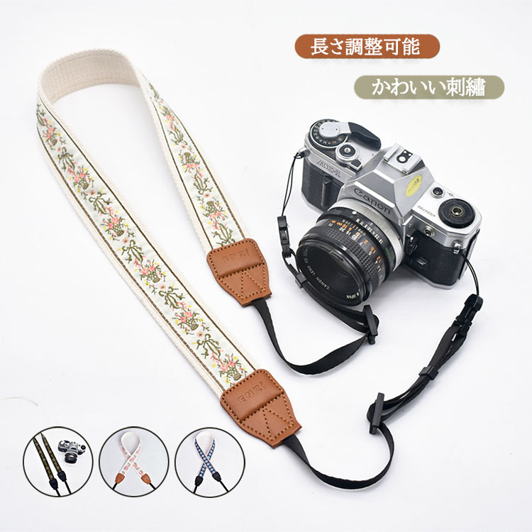 カメラストラップ カメラネックストラップ 一眼レフ/ミラーレス/コンパクトカメラ用 刺繍 ボヘミアン風 長さ調節可 斜めがけ ショルダーストラップ かわいい おしゃれ アウトドア 旅行 速写ストラップ 望遠レンズ 対応 三角リング付き
