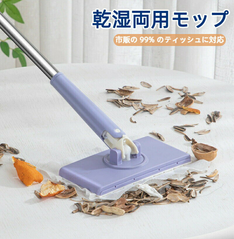 お買い物マラソン【P5倍】水洗い不要モップ 除塵紙(使い捨て) 除塵紙付きモップ 分離可能 長方形ヘッド 180度回転可能 モップ 吸着力バツグン 静電吸着 家庭用 床掃除モップ 掃除用品 回転モップ(防塵紙3パック付属-合計90枚)持ち運びに便利