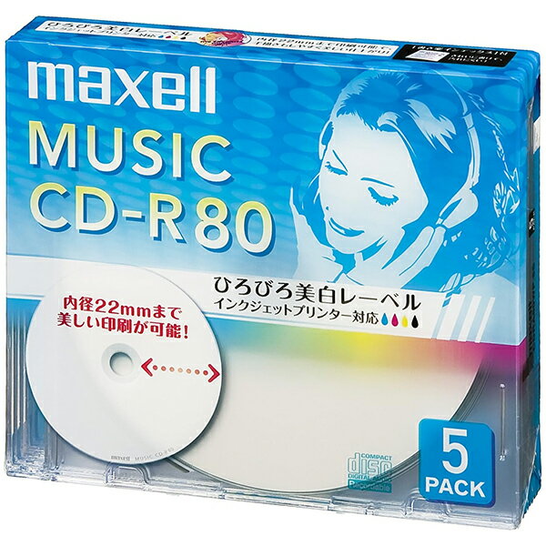 CDRA80WP.5S maxell [音楽用CD-R 80分 ワイドプリントレーベル ホワイト 5枚パック 1枚ずつ5mmプラケース入り]