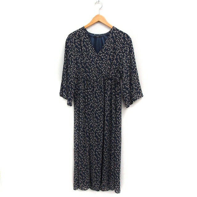 【中古】カスタネ Kastane 小花柄 フレア ワンピース ロング丈 7分袖 クロスVネック F ネイビー 紺 /FT43 レディース 【ベクトル 古着】 250517