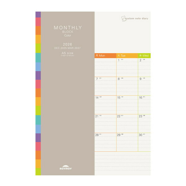 【1000円以上お買い上げで送料無料♪】レイメイ藤井 2026年 システムノートダイアリー ブロックカラー A5 1ヶ月ブロックカラー 見開き1ヶ月 - メール便発送